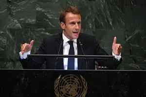 گفتنیست، سخنرانی رهبر فرانسه در حالی عصر سهشنبه (به وقت نیویورک) آغاز شد که شامگاه دوشنبه او در نشست ویژه سازمان ملل متحد تحت عنوان اجلاس راهحل دو دولتی، برای پایان دادن به مناقشه فلسطین و رژیم اسرائیل سخنرانی کرد و در اقدامی کمسابقه، تشکیل دولت مستقل فلسطین را به رسمیت شناخت.